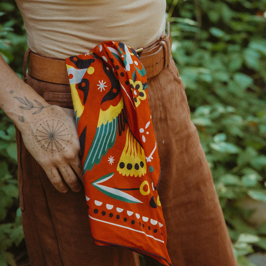 A phoenix, dragons, and jewelry print elevate this 100% silk scarf from LoomVita. Wear it around your neck, as a headband, or tie it to your favorite handbag. Perfect for any occasion, it enhances your style with timeless sophistication and makes an exquisite gift....